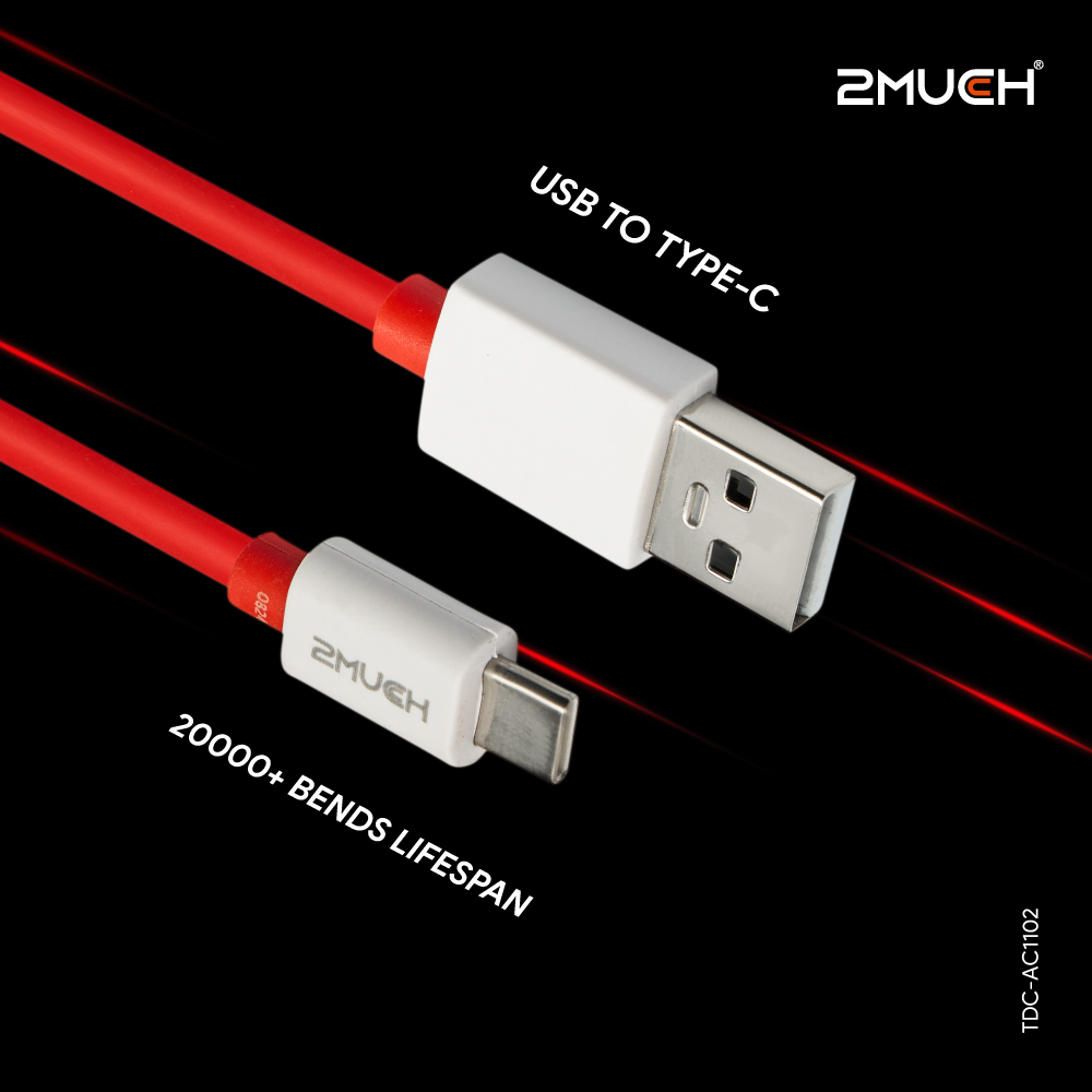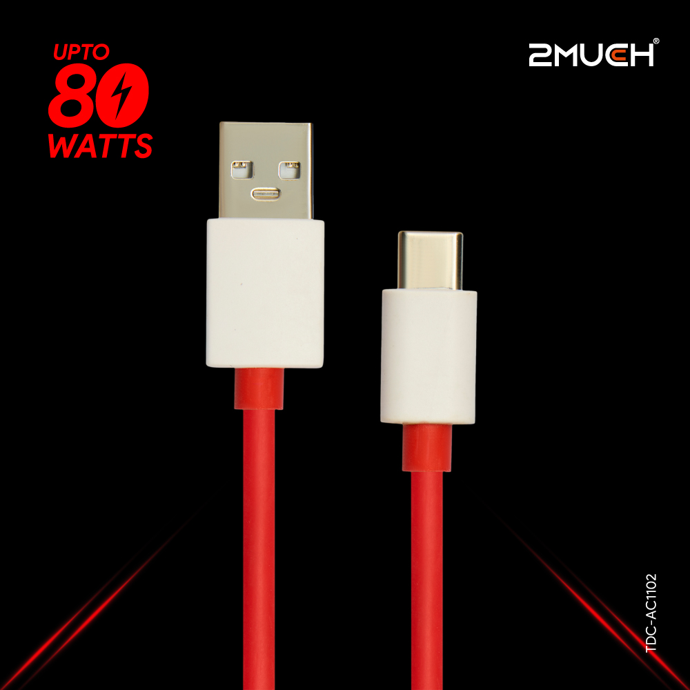 Power up your devices with the 2 MUCH Extreme USB to Type-C cable, supporting high-speed 80W charging. Its 1m TPE construction offers enhanced strength and heat resistance, while the bold red color adds a stylish touch.
